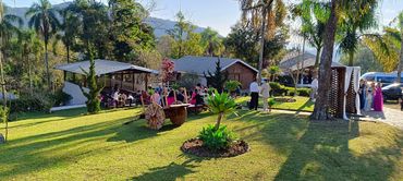 O espaço dispõe de infraestrutura completa para seu evento. São 12.000 m2 de área total, com salão para recepcionar os convidados, salão de festas para 200 pessoas sentadas, chale para os noivos, cascata, estacionamento próprio, além de uma mini capela coberta para sua cerimonia